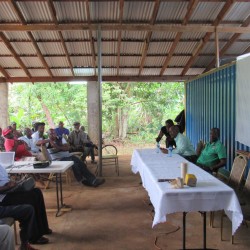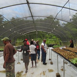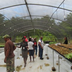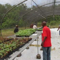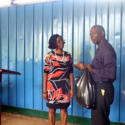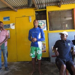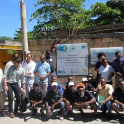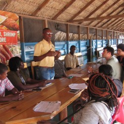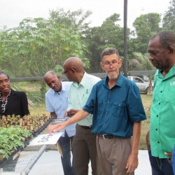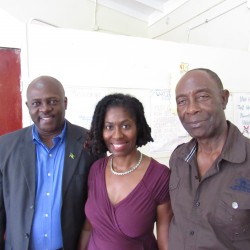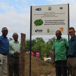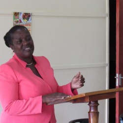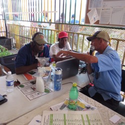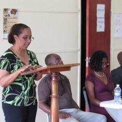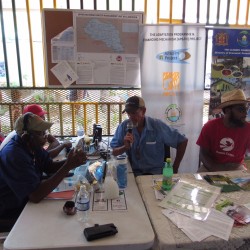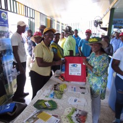 Bridgette Barrett, Community animator for the Adaptation Programme and Financing Mechanism (AP&FM) tells visitors to the booth about the project activities to help residents of the Bullhead and surrounding communities adapt to climate change.